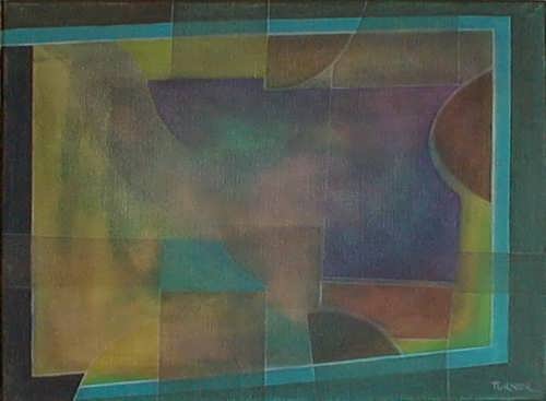 Using thin layers of paint that allow the colour beneath to show, this abstract